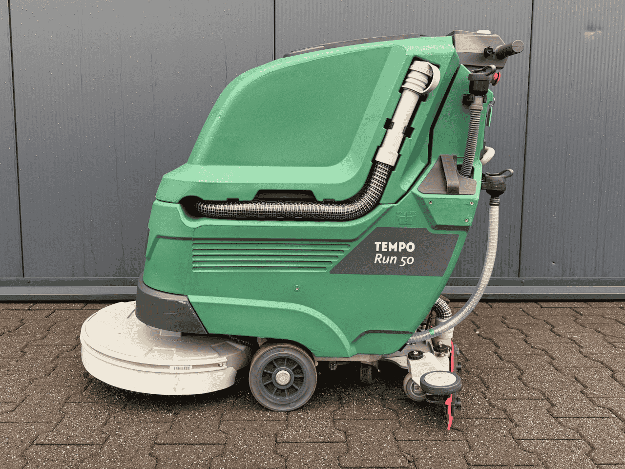 Met een schrobbreedte van 50,8 cm, een dweilbreedte van 70 cm en een borsteldruk van 23 kg verwijdert de Tempo Run 50 moeiteloos vuil en aanslag. De schijfborstel zorgt voor een gelijkmatig en zichtbaar schoon resultaat op uiteenlopende vloertypen.