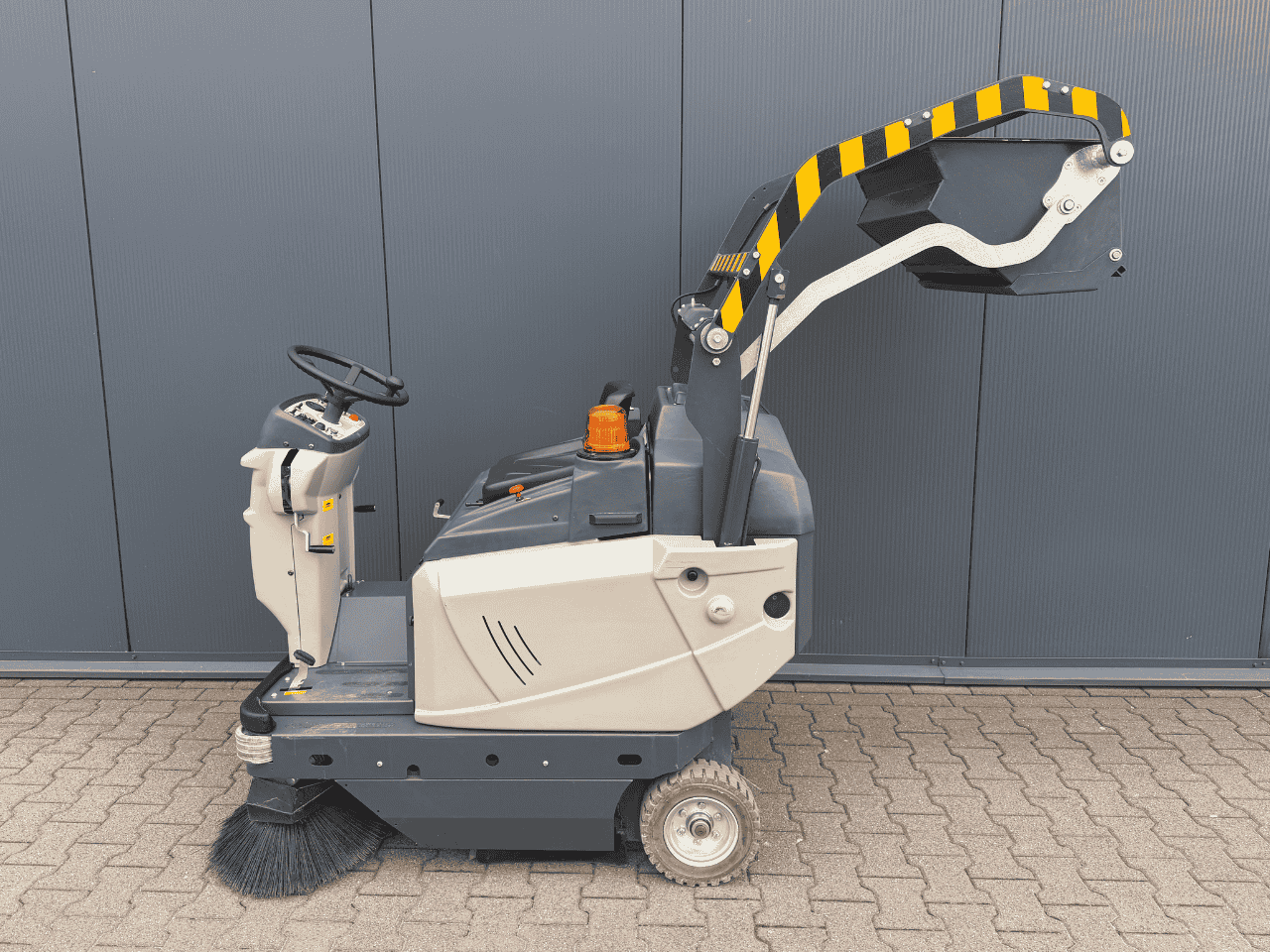 Thanks to the 24V battery, the machine operates emission-free and quietly (<70 dB). The front-wheel drive, clear controls and pleasant sitting position make prolonged work comfortable. The electric filter shaker keeps the filter system clean even in dusty conditions.