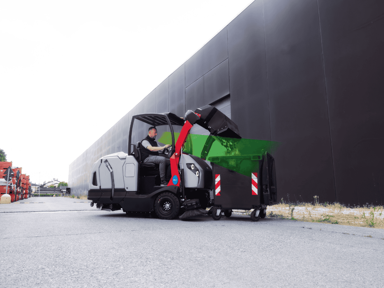 Powered by a 36V battery pack, the VSR1300 drives quietly (75 dB) and emission-free. The rear-wheel drive and clear seating position make the machine pleasant to operate, even in busier indoor areas. Dirt pickup is efficient thanks to the 300-liter hopper with high release function, making emptying easy and fast.