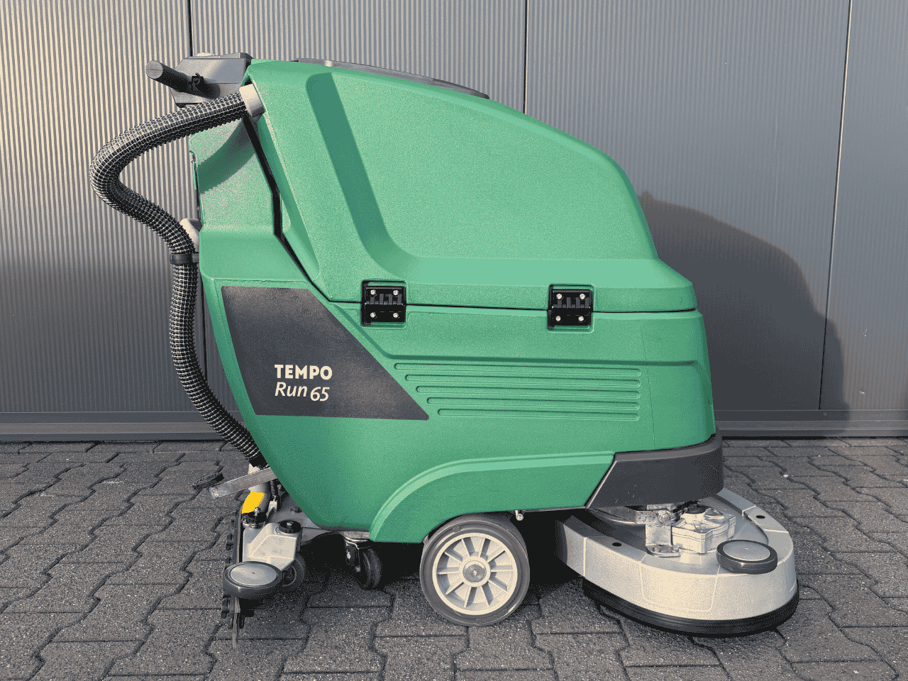 Met een schrobbreedte van 65 cm en een dweilbreedte van 80 cm reinigt de Tempo Run 65 tot 2.295 m² per uur. De twee schijfborstels (34 cm) leveren samen 25 kg borsteldruk, waardoor ook hardnekkig vuil effectief wordt verwijderd.