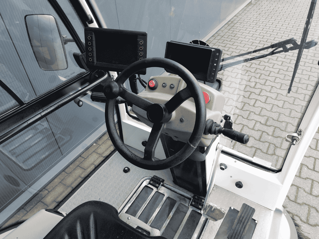 De panoramische cabine biedt uitstekend zicht en intuïtieve bediening. Dankzij de stille elektrische aandrijving en een hellingsvermogen tot 35% werkt de machine veilig en prettig in uiteenlopende buitenruimtes zonder geluidsoverlast.